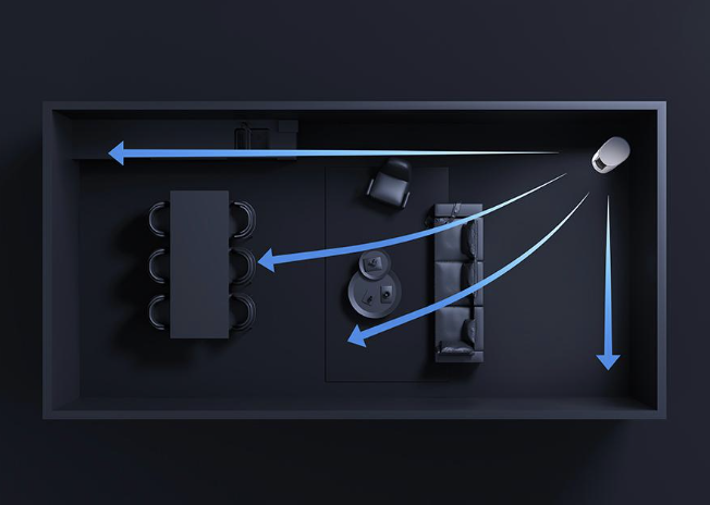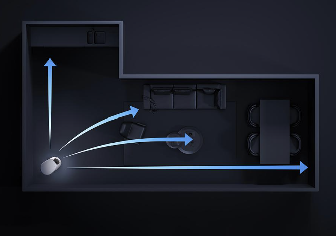 Нет слепых зон! Широкоугольная зона обдува 115°, дальность подачи воздуха 13 м обеспечивает комфорт в каждом уголке гостиной и столовой.